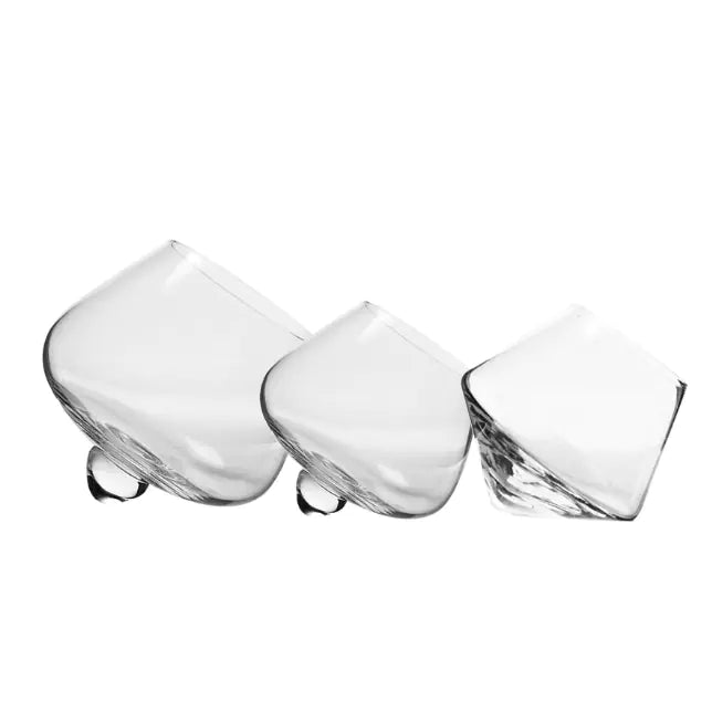 Elevate your drinking experience with our exquisite Crystal Whiskey Swirl Glass. Crafted from high-quality glass, this stunning rocking tumbler is designed to enhance the aroma of your favorite spirits while providing a luxurious feel in your hand.