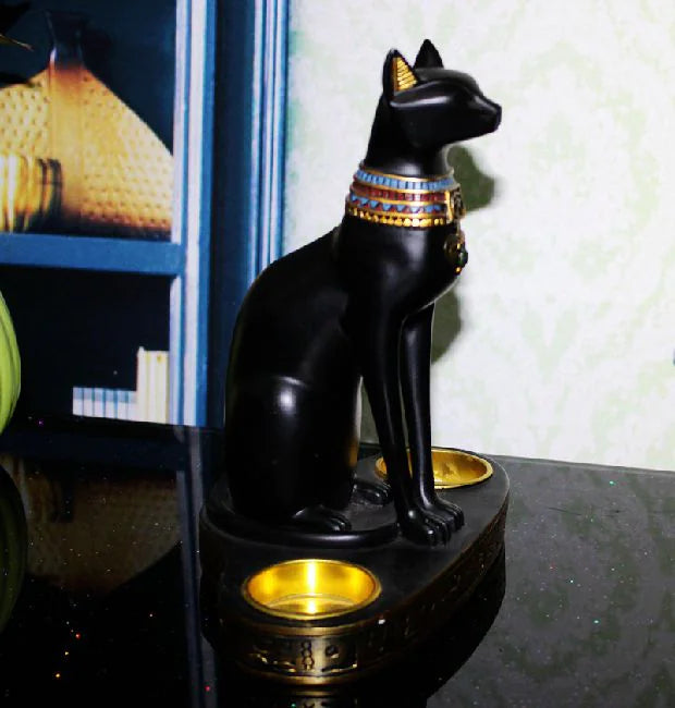 Egyptian Cat Candle Holder - Dual Candle Stand Decor